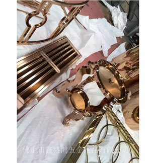 • 拉絲玫瑰金不銹鋼鏤空雕刻花格